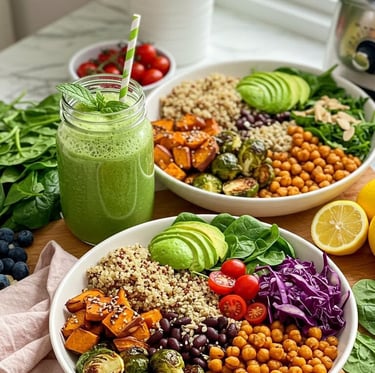 O conteúdo inclui receitas práticas e rápidas para café da manhã, almoço e jantar, apoiando uma alimentação mais ética, sustentável e alinhada a um estilo de vida mais consciente.